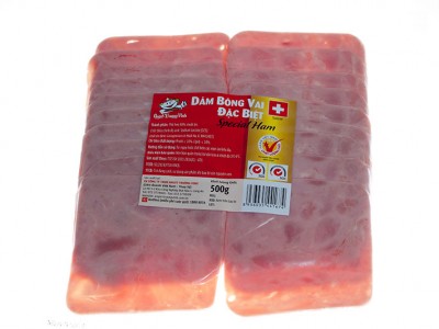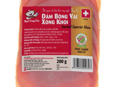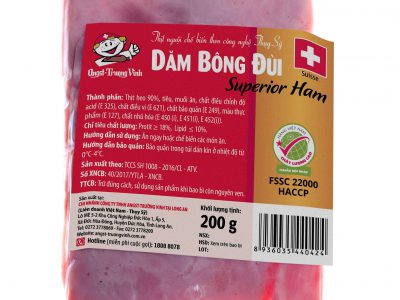 _ Thành phần: Thịt heo, gia vị._ Hạn sử dụng: 40 ngày._ Điều kiện bảo quản: Trong túi dán kín ở nhiệt độ 0-4°C (ngăn mát tủ lạnh)._ Đặc điểm: Sản xuất từ những khối thịt nạc heo được chọn lọc kỹ, ướp gia vị và xông khói bằng dăm gỗ sồi thiên nhiên nhập […]