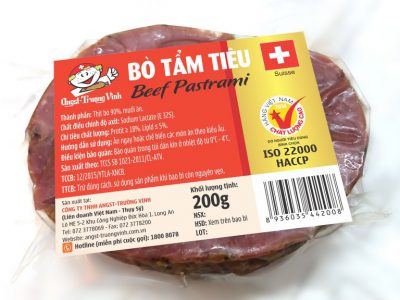 _ Thành phần: Thịt bò, gia vị._ Hạn sử dụng: 40 ngày._ Điều kiện bảo quản: Trong túi dán kín ở nhiệt độ 0-4°C (ngăn mát tủ lạnh)._ Đặc điểm: Sản xuất từ nguồn nguyên vật liệu được chọn lọc kỹ, cùng gia vị nhập khẩu từ Châu Âu có hương thơm đặc trưng và […]